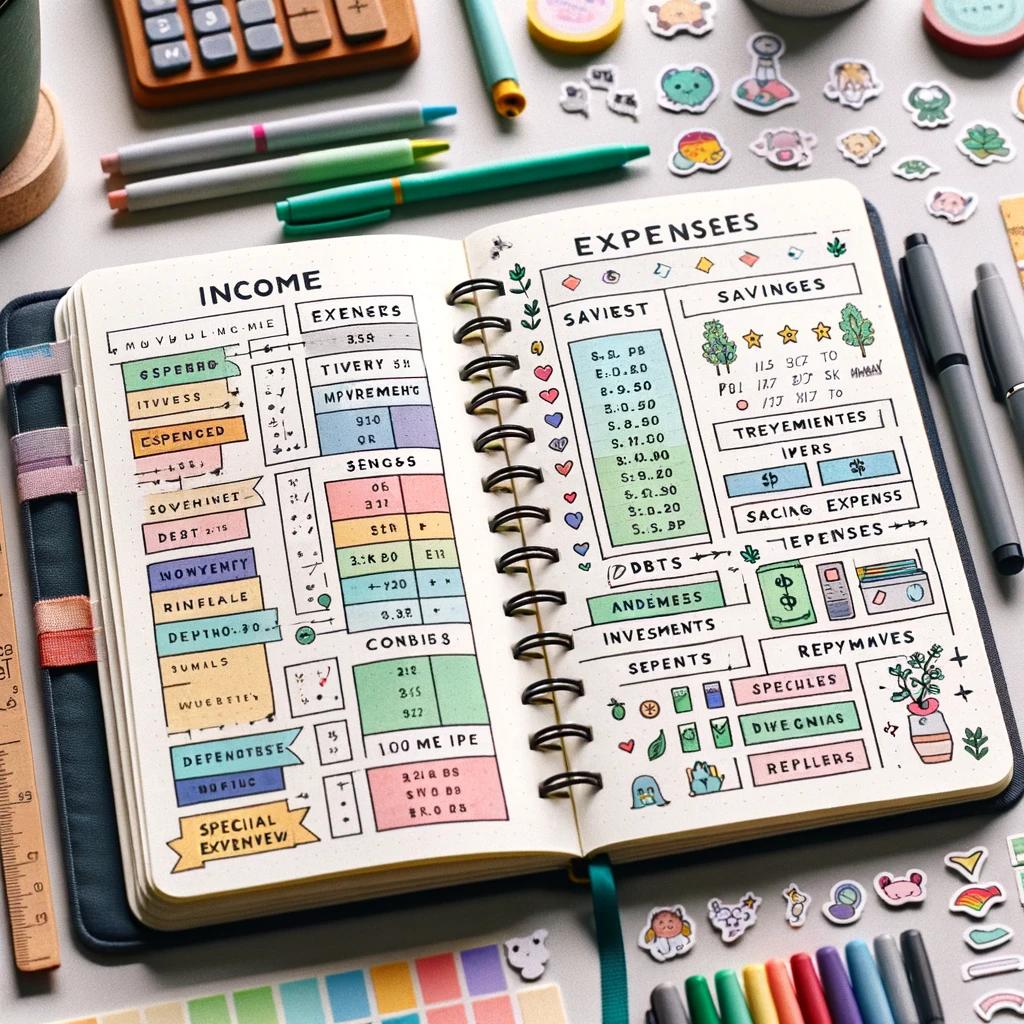 블렛저널의 앞부분이나 중간에 인스피레이션 페이지를 만들어 보세요. 동기 부여 문구, 성공적인 재정 관리 사례, 목표를 시각화한 그림 등을 포함시켜 자주 볼 수 있게 합니다. 이는 지속적인 동기 부여에 큰 도움이 됩니다.